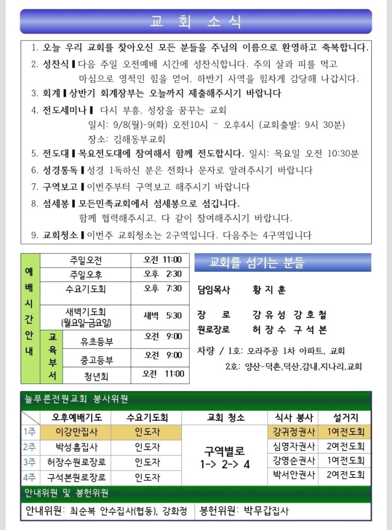 25.09.07 교회 주보